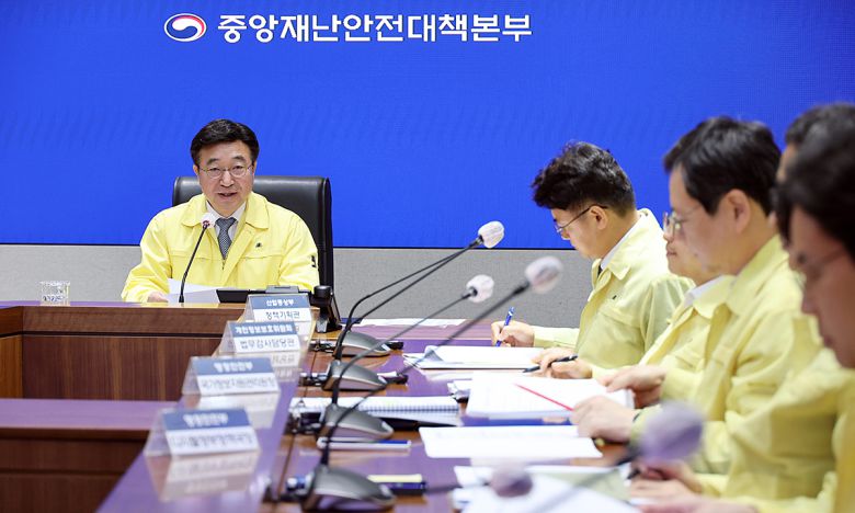 윤호중 중앙재난안전대책본부장(행정안전부 장관)이 31일 오전 정부서울청사에서 국가정보자원관리원 행정정보시스템 화재 관련 중대본 회의를 주재하고 모두 발언을 하고 있다. 행안부 제공