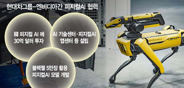 현대자동차그룹과 엔비디아가 국내 피지컬 인공지능(AI) 분야에 약 30억 달러(약 4조3000억 원)를 투자하기로 했다. 현대차(005380)는 엔비디아가 공급하는 5만 장의 차세대 AI 칩 ‘블랙웰’을 활용해 피지컬 AI 모델을 개발할 예정이다. 그룹 차원에서 미래 성장 동력으로 키우고 있는 로봇 사업과 자율주행차 개발에 날개를 달게 됐다는 평가다.