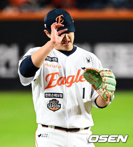 이어 문보경에게는 스트레이트 볼넷을 내줬다. 초구 직구는 시속 140km로 크게 떨어졌다. 오스틴 딘을 유격수 땅볼 유도하며 2사 1,3루가 된 뒤 양상문 한화 투수코치가 올라와 흐름을 한 번 끊었다. 오지환에게 던진 6구째 직구는 시속 150km로 이날 경기 처음으로 150km를 넘었고, 그 다음 포크볼로 헛스윙을 이끌어내며 삼진을 잡았다.
