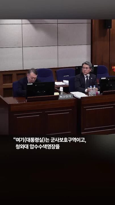 이에 윤 전 대통령은 “제 아내가 궁금하고 걱정돼서 문자를 넣었는지 모르겠지만, 검찰에 26년 있으면서 압수수색영장을 수없이 받아봤는데 여기는 군사보호구역이고, 청와대 압수수색영장을 집행한다는 것 자체가 불가능한 일이고 해본 적이 없다”고 말했다. 윤 전 대통령은 “수사기관에서 국군통수권자가 거주하는 지역에 막 들어와서 압수수색을 한다는 건 우리나라 역사에 없는 일”이라며 “제가 이걸 가지고 걱정할 이유가 없다”고 반박했다. 특검팀 검사가 김 여사를 ‘영부인이던 김건희’라고 칭한 것에 대해 윤 전 대통령은 “아무리 그만두고 나왔다고 해도 ‘김건희’가 뭡니까. 뒤에 ‘여사’를 붙이든지 해야지”라며 목소리를 높였다.