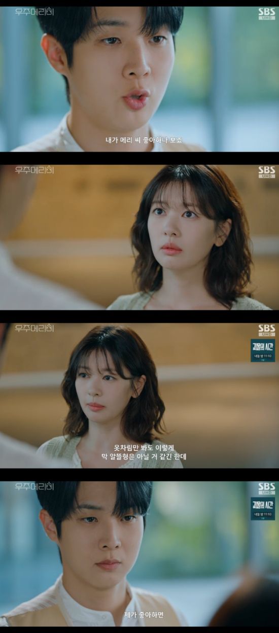 (엑스포츠뉴스 오수정 기자) '우주메리미'에서 정소민이 최우식의 고백에 당황했다.