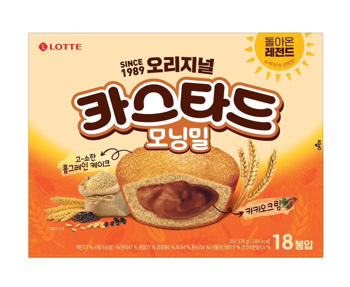 1일 업계에 따르면 롯데웰푸드가 단종됐던 ‘카스타드 모닝밀’을 리뉴얼해 지난달 말 재출시했다. 초코 크림이 들어간 촉촉한 통곡물 케이크로, 2021년 단종 이후 소비자 재출시 요청이 끊이지 않았던 제품이다.