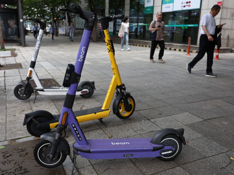 서울 시내 거리에 주차된 공유 전동킥보드. 뉴시스 |