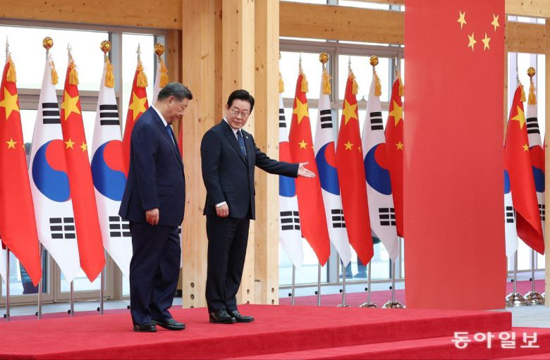 이재명 대통령과 국빈 방한한 시진핑 중국 국가주석이 1일 경북 경주 국립경주박물관에서 열린 공식환영식에서 참석해 있다. 경주=송은석 기자 silverstone@donga.com
