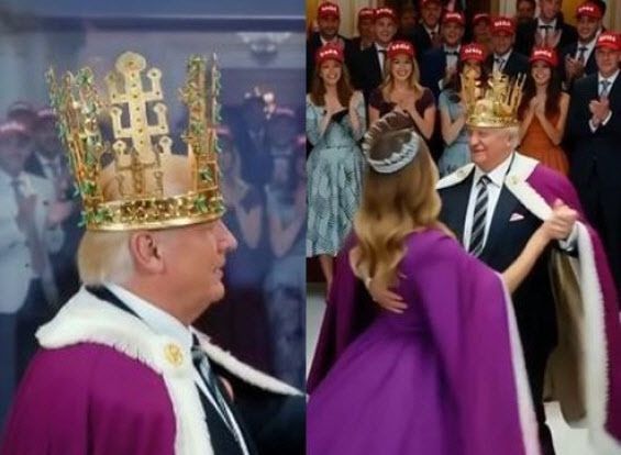 트럼프가 금관 쓴 채 춤추는 합성 영상도 확산