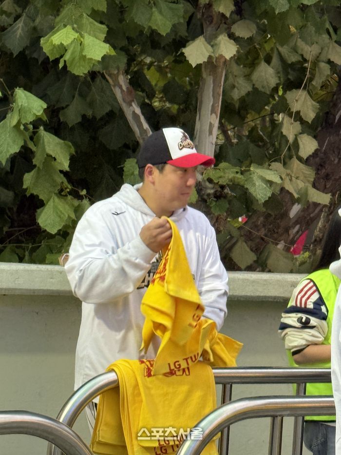 팬에게 직접 우승 타올을 나눠주기 위해서다. LG 관계자는 스포츠서울을 통해 “팬과 기쁨을 함께 나누는 자리다. 선수단이 먼저 팬에게 응원 타올을 전달하고 싶다고 했다. 한시즌 보내준 성원에 보답하기 위해서다”라고 전했다.