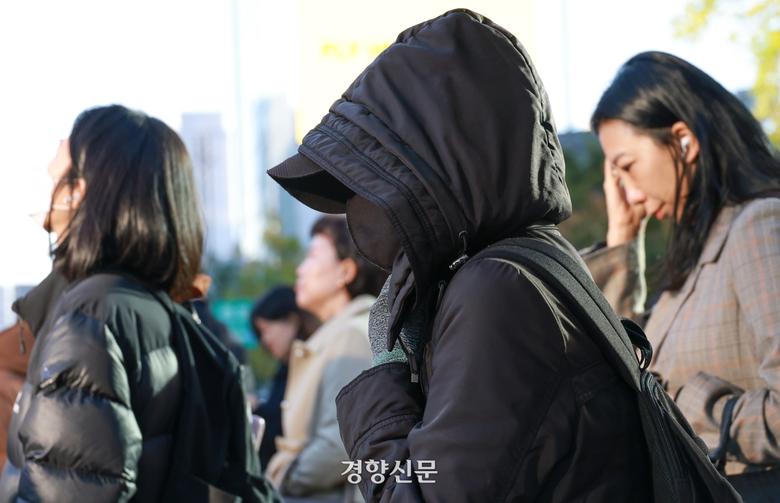 추위에 온몸을 감싼 시민들. 성동훈 기자 |