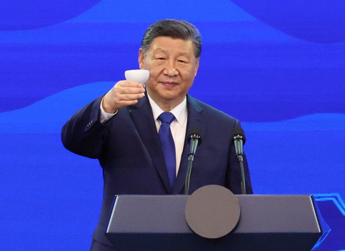 [서울=뉴스핌] 시진핑 중국 국가주석이 1일 경북 경주 소노캄 호텔에서 열린 한중 정상 국빈 만찬에서 건배제의를 하고 있다. [사진=APEC 2025 KOREA & 연합뉴스] 2025.11.01 photo@newspim.com