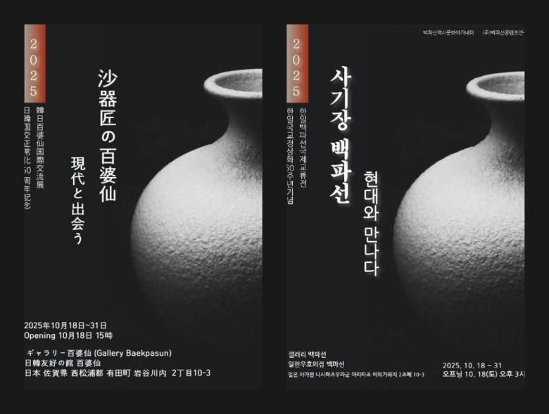 일본 사가현 아리타에 위치한 갤러리 백파선(Gallery 百婆仙)에서 한일국교 정상화 60주년을 기념한 한일백파선국제교류 33인전 ‘2025, 사기장 백파선 현대와 만나다’가 지난달 18일 개막해 성황리에 열리고 있다.