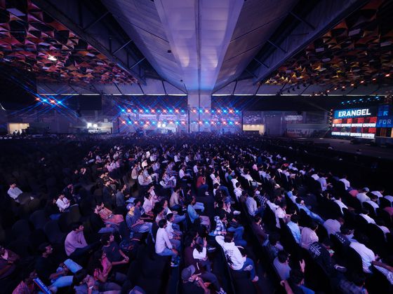 지난달 31일 인도 델리 야쇼부미 컨벤션 센터에서 시작한 e스포츠 대회 'BMIC 2025' 현장. 사진 크래프톤 |