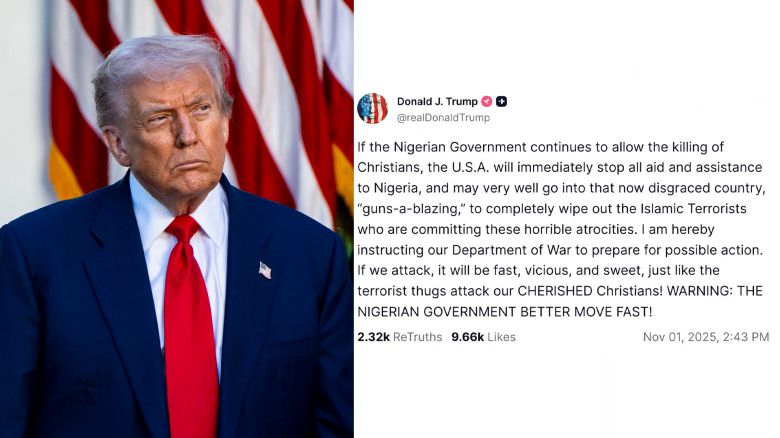 도널드 트럼프 미국 대통령이 나이지리아 정부가 기독교인 학살을 용인한다고 주장하며 이를 막기 위해 군사력을 쓸 수 있다고 경고했습니다.