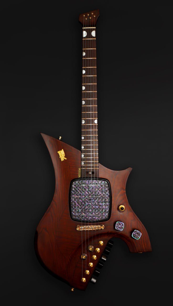 이재명 대통령이 로렌스 웡 싱가포르 총리에게 선물한 나전칠기 장식이 된 일렉트릭 기타. 대통령실 제공
