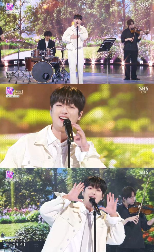 이찬원은 2일 오후 방송된 SBS ‘인기가요’에 출연해 정규 2집 ‘찬란(燦爛)’의 타이틀곡 ‘오늘은 왠지’ 무대를 펼쳐 깊은 울림을 선사했다.