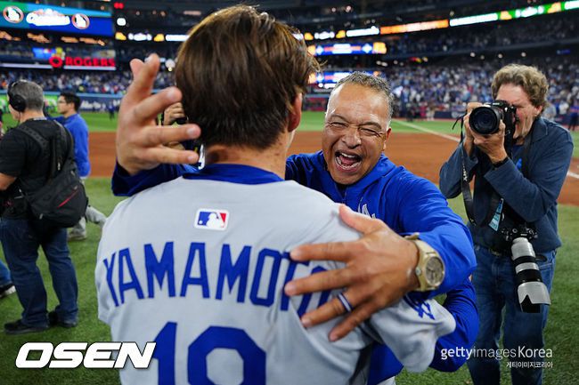 경기 후 우승의 기쁨을 만끽한 로버츠 감독. 야마모토가 우승을 만들어줬다고 해도 과언이 아니다. 이미 월드시리즈 트로피를 수여하는 시상식 자리에서 “야마모토는 G.O.A.T다!”라고 외친 바 있다.