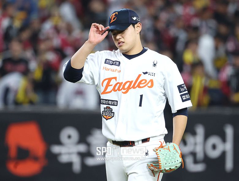 그런데 나흘을 쉬고 나선 LG와 한국시리즈 1차전에서는 최고 구속이 153.7㎞, 평균이 151.4㎞를 기록했다. 이는 문동주의 시즌 평균을 한참 하회하는 것이었다. 그리고 운명의 한국시리즈 5차전에서는 최고 149.9㎞, 평균 145.8㎞에 그쳤다. 뭔가 문제가 있었고, 괜히 던지다가 부상 위험이 오면 낭패였다. 문동주의 능력을 100% 발휘하지 못하는 상황에서 계속 둬봐야 경기 양상만 어려워질 수도 있었다. 한화 벤치의 교체는 타당했다.