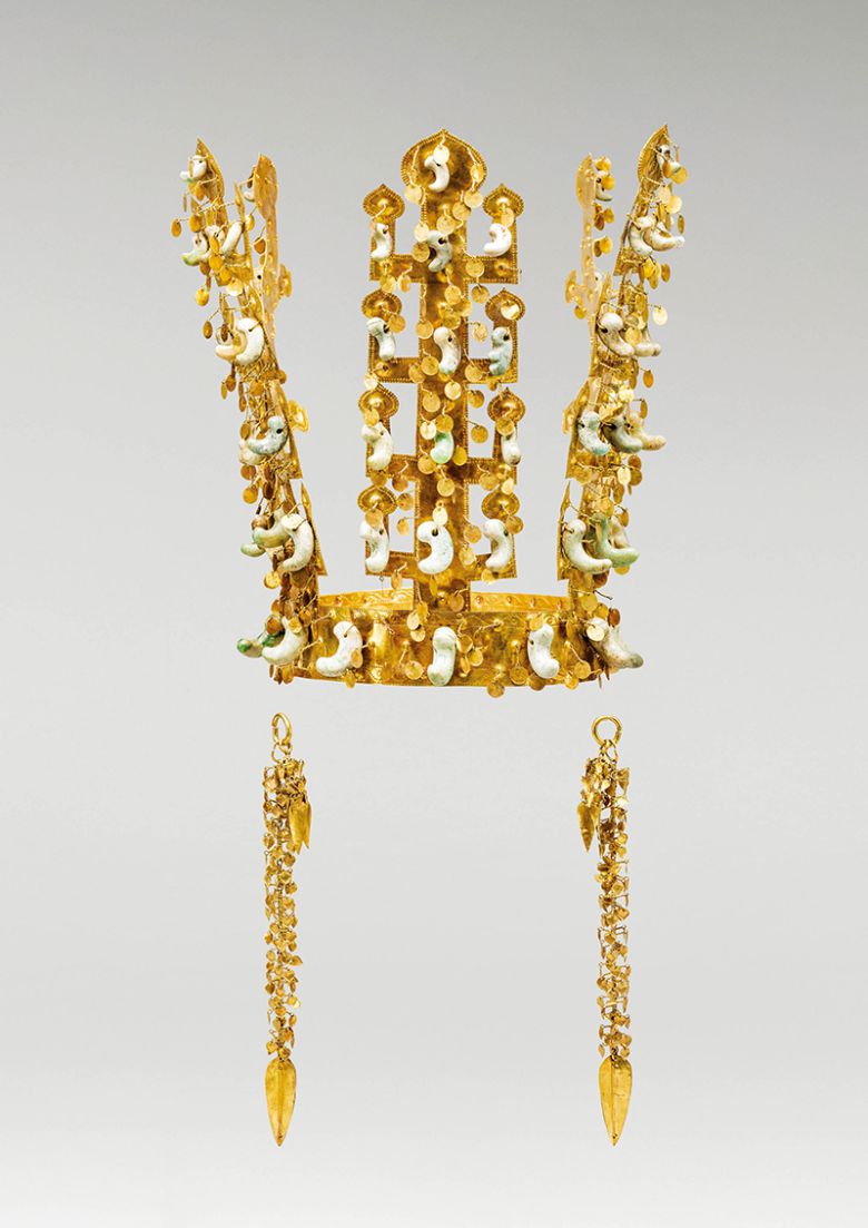 이번 전시는 신라의 황금 문화를 집약한 유물 단 20점만을 다룬다. 금관과 더불어 금 허리띠 6점까지 세트로 공개하는 것도 처음이다. 전시 유물 가운데 국보가 7점, 보물이 7점으로 신라의 황금빛 광채를 총집결한 자리다. 전시를 기획한 김대환 학예연구사는 “신라 금관은 하늘과 땅을 하나로 잇는 다양한 상징들로 구성돼 있다. 나라의 정체성과 세계관뿐 아니라 마립간의 권력과 위신의 상징”이라고 강조했다.
