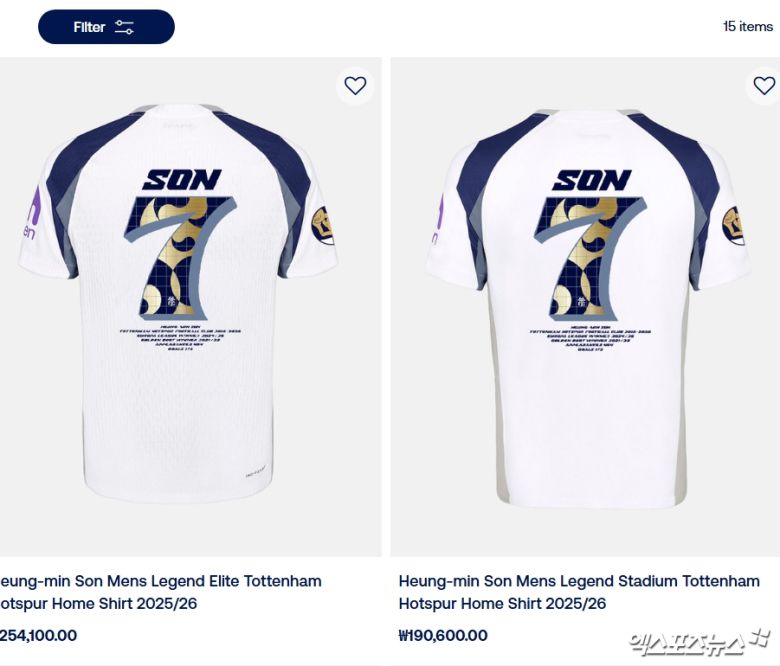 그리고 올 시즌 손흥민의 성과 한국인 디자이너가 만든 등번호 7번 디자인의 '레전드 엘리트 토트넘 홋스퍼 홈 유니폼이 25만 4100원에 판매되고 있다.