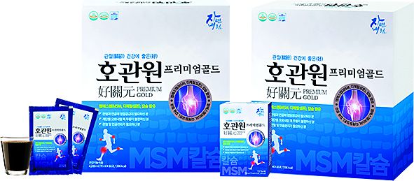 자연내림 호관원의 ‘호관원 프리미엄 골드’(사진)는 연골 결합조직의 필수 구성 성분인 식이유황(MSM)과 골다공증 발생 위험을 낮출 수 있는 칼슘을 주성분으로 한 관절 건강기능식품이다. MSM은 12주간의 인체 적용시험을 통해 관절의 물리적 기능 개선과 통증 감소에 유의한 개선 효과를 보이는 것으로 파악됐다. 해당 시험에는 40~76세의 무릎관절이 불편한 성인 남녀 40명이 참여했다. 이들은 하루 2회, 총 6g씩 MSM을 섭취했다. 주성분 외에도 제품에는 관절 기능을 보완해 주는 34가지 부원료가 더해졌다. 보스웰리아 추출물과 글루코사민, 피시콜라겐 펩타이드 등이다. 피시콜라겐 펩타이드는 칼슘 손실을 방지하고, 글루코사민은 관절 내 연골 유지에 도움을 준다. 호관원 프리미엄 골드는 흡수가 빠른 액상 파우치 형태라 언제든 간편하게 섭취가 가능하다. 1일 2회, 1회 한 포씩 먹으면 된다. 관절 사용이 잦은 운동이나 일을 하는 사람, 노후 관절 건강에 대비하고 싶은 이들 등에게 수요가 높다.