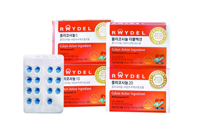 레이델코리아의 ‘레이델 폴리코사놀’(사진)은 이 회사의 독점 원료이자 쿠바 국립과학연구소에서 개발한 쿠바산 폴리코사놀-사탕수수왁스알코올을 주원료로 한 제품이다. 콜레스테롤 수치 개선과 혈압 조절에 도움을 준다. 이 제품의 기능성 원료인 폴리코사놀-사탕수수왁스알코올의 효능은 다양한 인체 적용시험을 통해 입증됐다. 쿠바인을 대상으로 한 시험 결과 매일 20㎎씩 4주간 이를 섭취했을 때 몸에 좋은 콜레스테롤(HDL) 수치는 29.9% 올라가고, 나쁜 콜레스테롤(LDL) 수치는 22% 내려간 것으로 파악됐다. 한국인을 대상으로 한 시험에서는 혈압 조절 기능성이 확인됐다. 건강한 성인 84명이 폴리코사놀-사탕수수왁스알코올을 12주 동안 섭취했더니 수축기 혈압이 약 7.7% 감소했다. 레이델코리아는 소비자의 선택권을 넓히기 위해 폴리코사놀 함량에 따라 제품을 세분화했다. 제품은 ▶폴리코사놀5 ▶폴리코사놀10 ▶폴리코사놀 더블액션 ▶폴리코사놀20 등 네 가지로 구분된다.