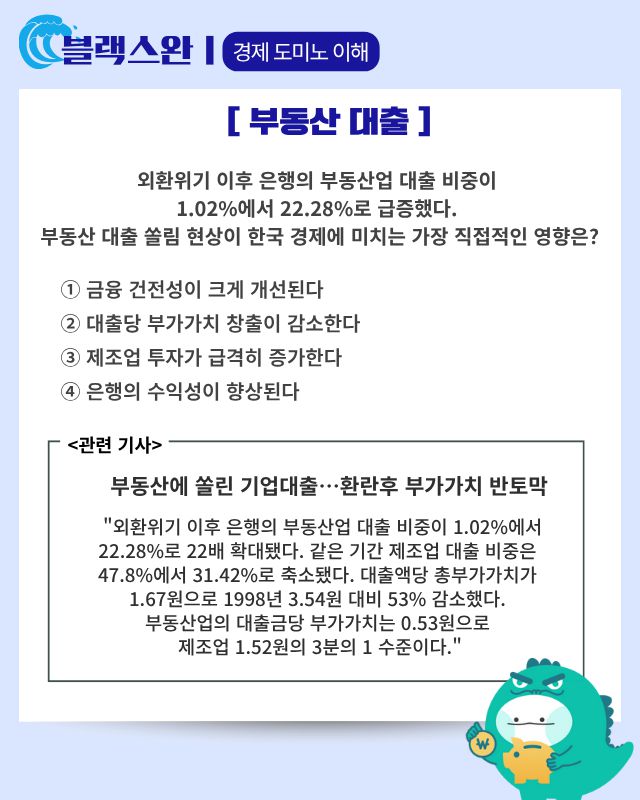 ▶기사 바로가기: 부동산에 쏠린 기업대출···환란후 부가가치 반토막