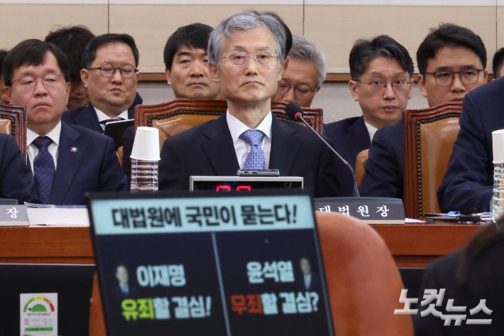 조희대 대법원장이 13일 서울 여의도 국회에서 열린 법제사법위원회의 대법원(법원행정처)·사법연수원·사법정책연구원 등의 국정감사에서 의원 질의를 받고 있다. 윤창원 기자 |