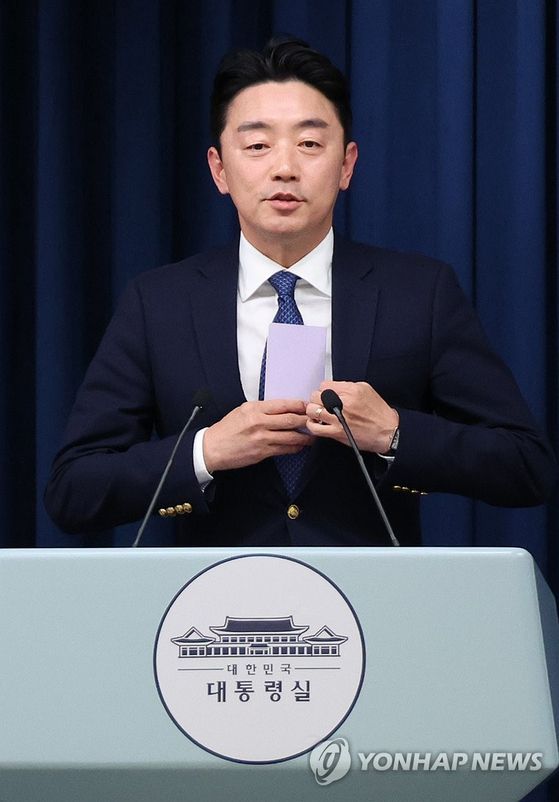 강훈식 대통령비서실장이 3일 용산 대통령실 기자회견장에서 재판중지법 관련 브리핑을 하고 있다. 〈사진=연합뉴스〉 |