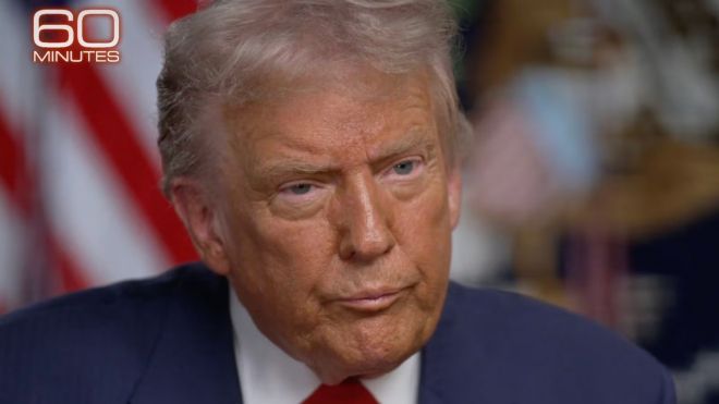도널드 트럼프 미국 대통령이 1일(현지시간) 플로리다 팜비치의 마러라고 리조트에서 진행된 CBS ‘60분’ 인터뷰에서 질문에 답하고 있다. 출처=CBS |