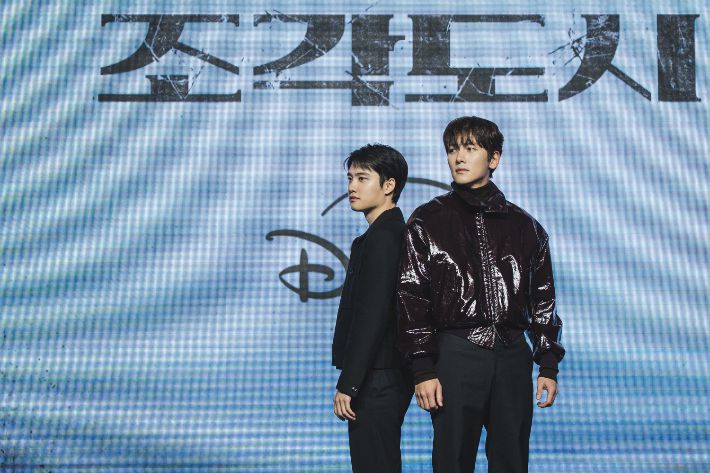 디즈니플러스(+) 시리즈 '조각도시'에서 첫 악역에 도전한 배우 도경수가 함께 호흡을 맞춘 이광수에 대해 "많이 긁혔다"고 웃었다.