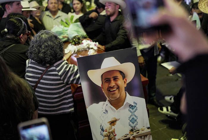 축제에서 장례식으로 2일(현지시간) 멕시코 우루아판시에서 카를로스 알베르토 만소 로드리게스 시장의 장례식이 치러지고 있다. 로이터연합뉴스 |