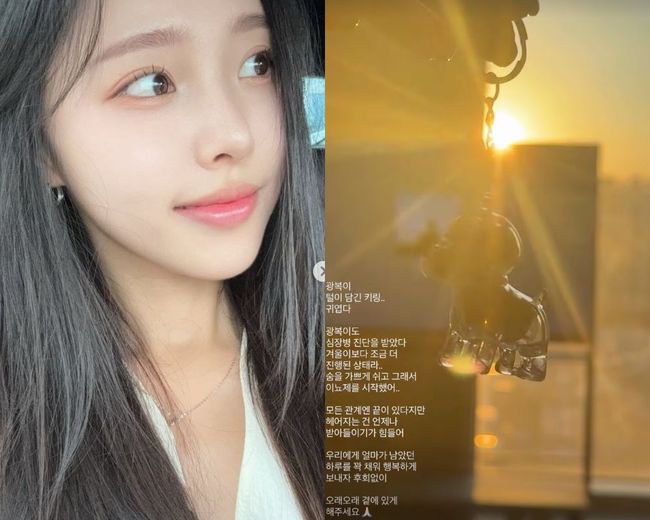 이어 “모든 관계엔 끝이 있다지만 헤어지는 건 언제나 받아들이기 힘들다. 우리에게 남은 하루를 꽉 채워 행복하게 보내자, 후회 없이. 오래오래 곁에 있게 해주세요”라며 애틋한 마음을 드러냈다.