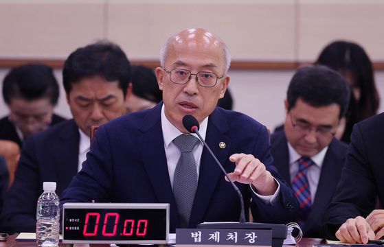 조원철 법제처장이 지난 24일 국회에서 열린 법제사법위원회의 법제처에 대한 국정감사에서 질문에 답하고 있다. 임현동 기자