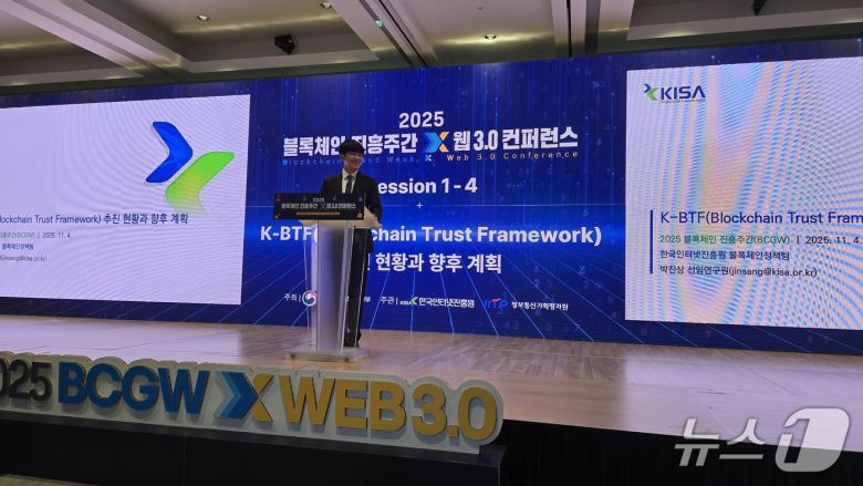 박진상 KISA 선임연구원은 기관의 'K-블록체인 신뢰 프레임워크(K-BTF)' 현황을 발표했다.