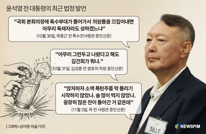 [서울=뉴스핌] 홍석희 기자 = 윤석열 전 대통령이 최근 내란 혐의 및 특수공무집행방해 재판에 출석해 직접 증인신문에 나서고 있다. 12·3 비상계엄 당시 자신과 직접 소통한 핵심 증인들로부터 유리한 진술을 끌어내려는 의도로 풀이된다.
