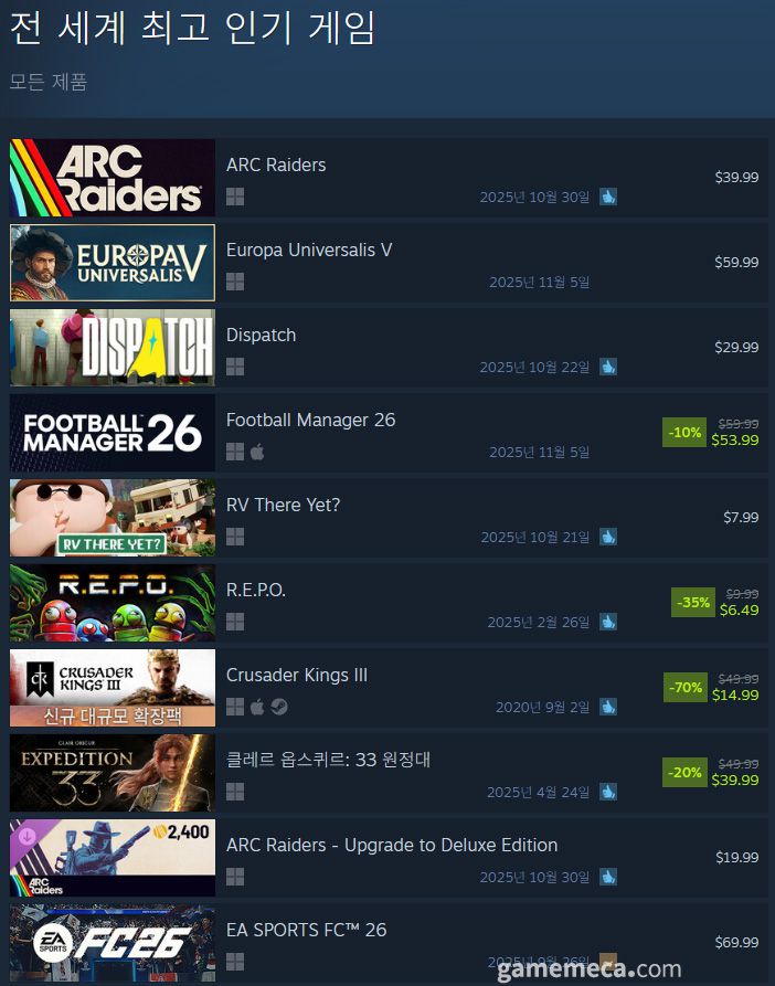 [관련기사]▶;[오늘의 스팀] 칼 문 공룡소울 '다이노블레이드' 데모 극찬▶;[오늘의 스팀] 동접 26만, 아크 레이더스 ‘매우 긍정적’▶;[오늘의 스팀] '배필 6' 배틀로얄 모드, 유저 반응 안 좋네
