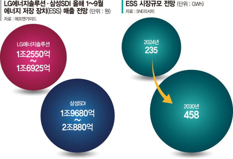 전기차 캐즘(일시적 수요 둔화)으로 고전하던 한국 배터리 업계가 에너지저장장치(ESS)로 '제2의 전성기'를 맞이할 채비를 하고 있다. LG에너지솔루션은 스텔란티스의 캐나다 합작공장에서 연내 리튬인산철(LFP) ESS 배터리를 생산하면서 북미 지역 ESS 수요 증가에 대한 대응을 본격화한다. ESS가 재생에너지 확대·데이터센터 등 미래 산업의 전력 기반으로 배터리 업계의 미래 성장 동력으로 주목받는 가운데 LG에너지솔루션은 이번 ESS 생산을 통해 급성장하는 북미 ESS 시장에 대한 공급 능력을 더욱 확대하게 됐다. 삼성SDI도 테슬라와 ESS용 배터리 공급을 추진 중이다. 계약 규모는 10GWh(기가와트시) 안팎으로 조(兆) 단위 계약이 될 것이란 관측이 나온다.