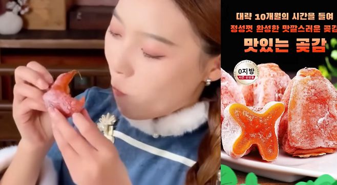 한국 농가의 정보를 도용해 만든 허위 곶감 판매 광고. 사진=유튜브 갈무리 |