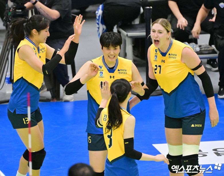 ◆현대건설, 셧아웃 승리 완성→선두 등극...IBK는 탈꼴찌 실패