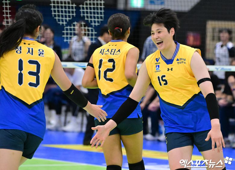 현대건설은 24-23에서 정지윤이 매치 포인트를 따내면서 셧아웃 승리를 완성했다.