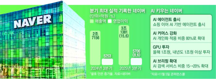 네이버는 내년에 AI가 이용자를 알아서 돕는 AI 에이전트를 쇼핑 등 주요 부문에 잇따라 도입하고, 그래픽처리장치(GPU)에도 연간 1조원 이상 투자하는 등 미래 먹거리 확보를 위한 ‘AI 올인’에 나설 예정이다.