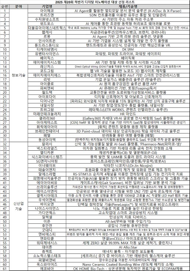 올해 하반기 디지털 이노베이션 대상에 총 400여개 업체 신청, 61개사 선정