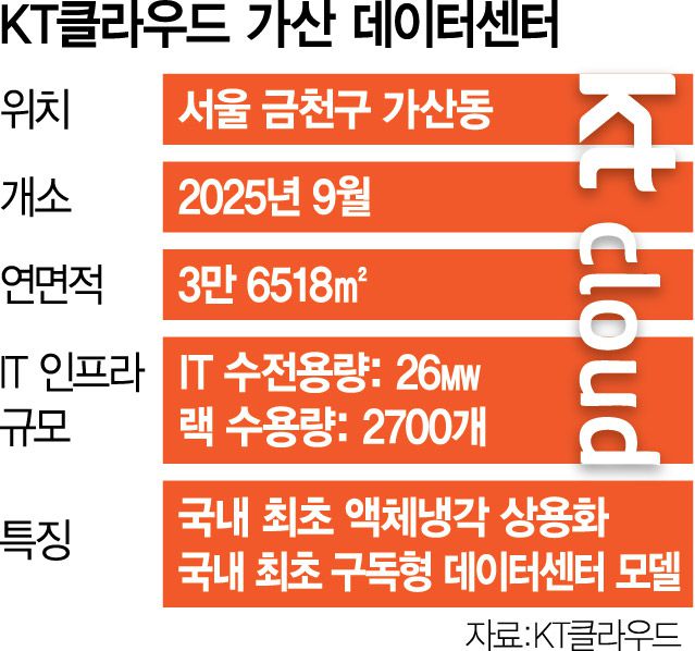 KT클라우드가 국내 데이터센터 사업자 중 최초로 구독형 사업 모델이 적용된 데이터센터를 공개했다. 서울 가산동에 위치한 데이터센터로, 국내 상용 데이터센터 중 가장 먼저 액체냉각 시스템을 도입한 곳이기도 하다. KT클라우드는 데이터센터 없이 최신 GPU의 발열 환경을 구현하는 기술을 개발한 덕에 고객 맞춤형 액체냉각 기술을 탑재한 구독형 데이터센터 서비스를 선보일 수 있었다.