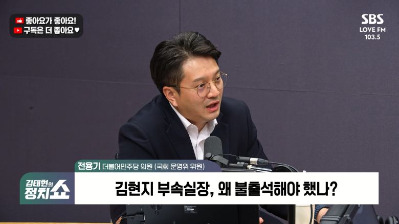 ▶전용기 : 법률상 일주일 전에 불러야 되는 내용들이 있지요. 제 생각에는 대통령도 답답했을 겁니다. 김현지 부속실장이 이렇게 악마화되는데 왜 내 수행 핑계대고 안 가게 되냐, 어떻게라도 보내라라고 하는 섭섭함, 그 답답함은 이해를 하겠으나 국정감사는 법률로 이루어지는 거기 때문에 법상 아무나 나와서 얘기할 수 있는 상황이 안 되거든요. 그렇기 때문에 못 나온 것인데요.