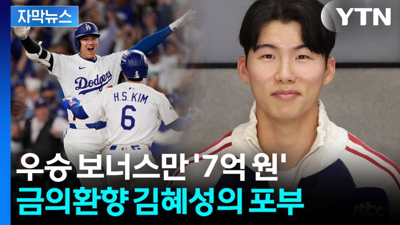 꿈의 무대에 도전해 일궈낸 메이저리그 승리로 다저스에서 받을 우승 보너스만 7억 원 안팎이 될 것으로 보입니다.
