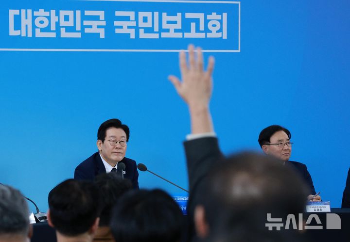 [서울=뉴시스] 고범준 기자 = 이재명 대통령이 7일 대전 유성구 국립중앙과학관에서 열린 다시 과학기술인을 꿈꾸는 대한민국 국민보고회에서 참석자 질문을 받고 있다. 2025.11.07. bjko@newsis.com