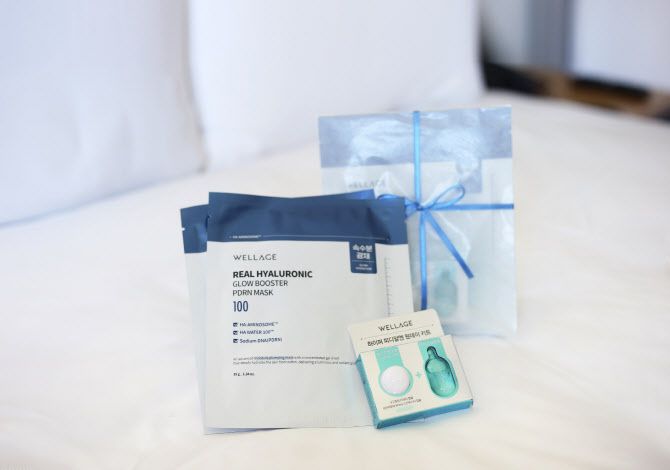 패키지 구성은 객실 1박과 △하이퍼 PDRN 원데이 키트 1개 △리얼 히알루로닉 글로우 부스터 PDRN 겔 마스크 2개로 이루어졌다. 해당 제품은 피부 탄력 및 보습 관리에 초점을 맞춘 스킨케어 라인이다.