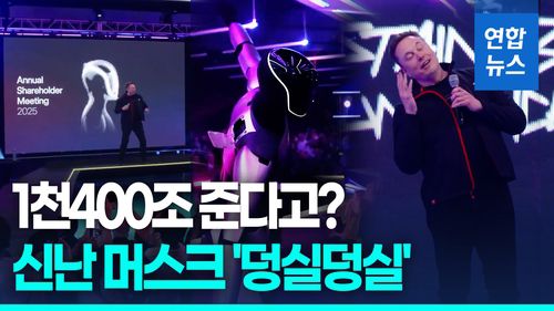 (서울=연합뉴스) 일론 머스크 테슬라 최고경영자(CEO)가 최대 1조달러(약 1천400조원) 규모의 주식 보상을 받을 수 있는 안이 6일(현지시간) 미국 텍사스 오스틴 본사에서 열린 테슬라 주주총회를 통과했습니다.