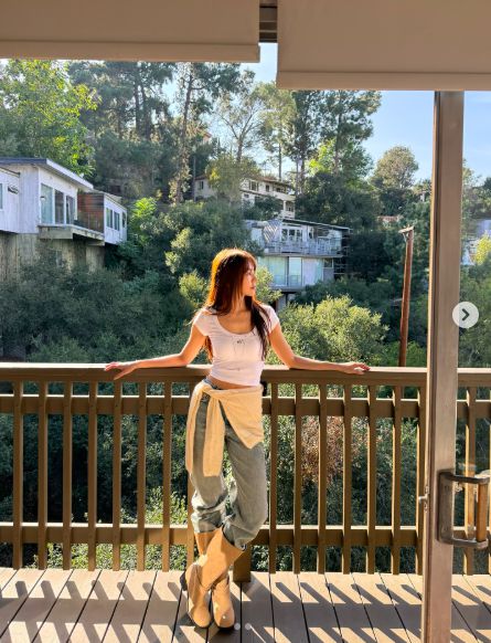 공개된 사진 속 윤은혜는 초록빛 풍경이 펼쳐진 테라스에서 햇살을 맞으며 여유로운 시간을 보내고 있다. 달라붙는 화이트 반팔 티셔츠에 청바지, 니트 가디건을 허리에 묶은 캐주얼한 차림으로 자연스러운 분위기를 자아냈다.
