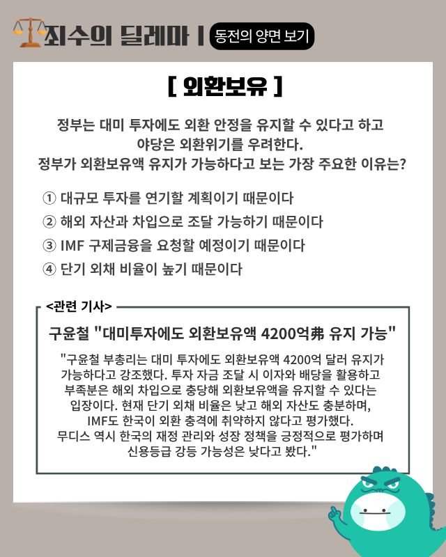 ▶ 기사 바로가기: 구윤철 “대미투자에도 외환보유액 4200억弗 유지 가능”