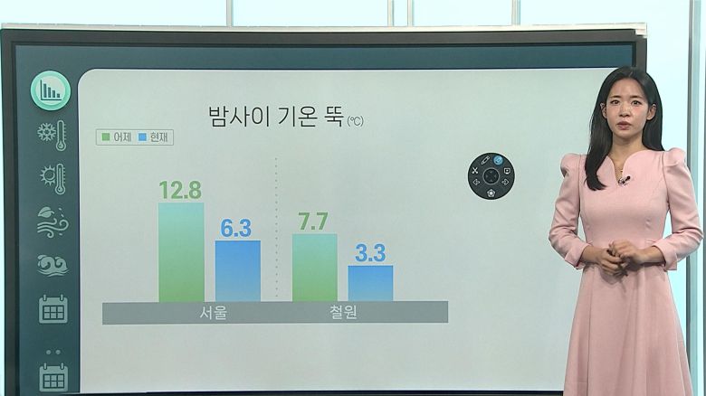 내일 아침은 기온이 더 떨어지면서, 오늘보다 춥겠습니다.