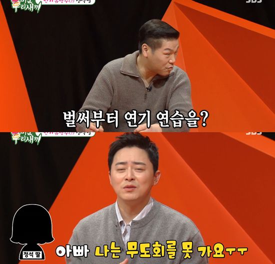 조정석은 "맞다, 연기 연습을 한다"라고 고개를 끄덕였다.
